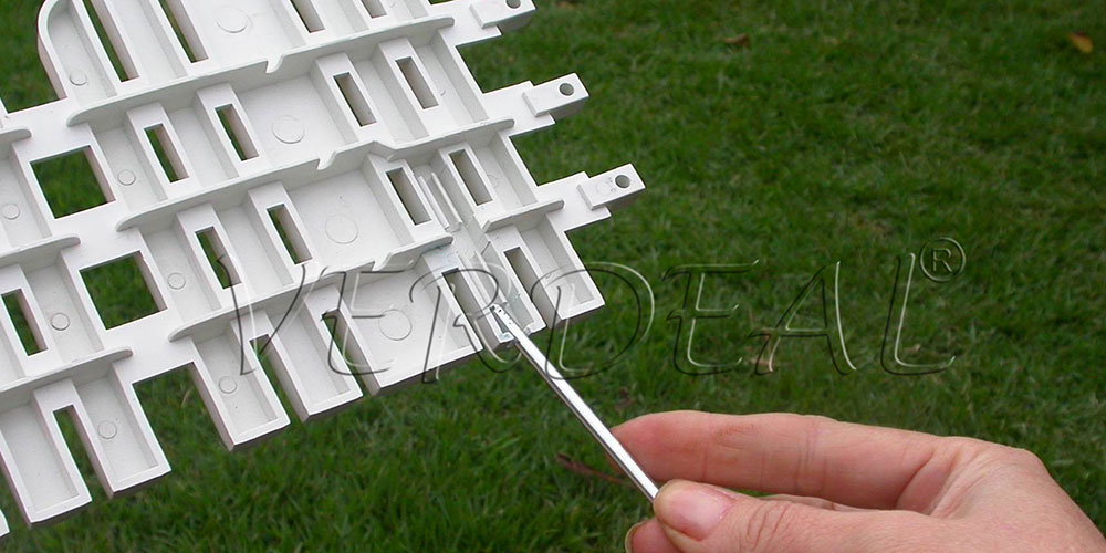 As Cercas Orla são confeccionadas em Polipropileno (PP) reciclado. Contém proteção Ultravioleta-UV, o que confere maior resistência aos efeitos dos raios solares. Não necessita manutenção. Estacas de metal galvanizado, colocadas no verso de cada peça, facilitam a colocação e a fixação da cerca na terra. Fácil de instalar.
