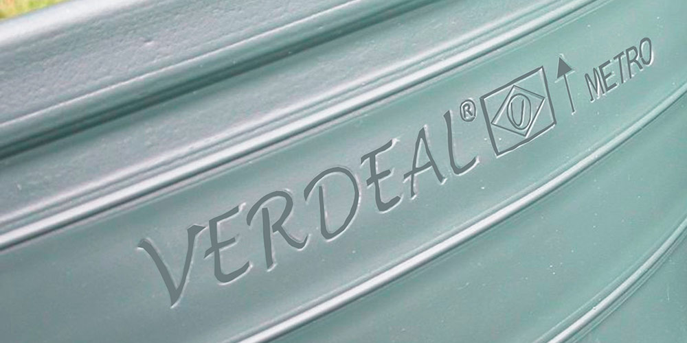 A marca VERDEAL impressa em baixo relevo a cada metro para facilitar o corte nas vendas.